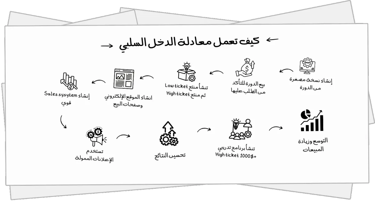 من اختيار فكرة الدورة، إلى تجهيز المحتوى، ثم إنشاء بوابة الدفع، وصولًا إلى نظام مبيعات أوتوماتيكي يعمل طوال الوقت.